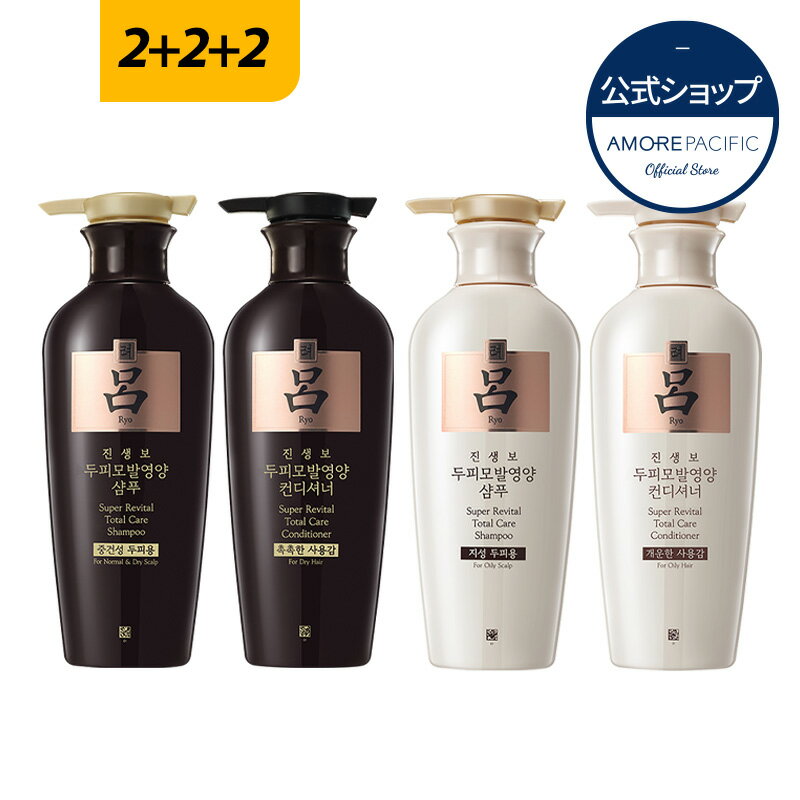 【韓国コスメブランド 呂/リョ/Ryo 公式】韓方シャンプー+リンス【朝鮮人参頭皮毛髪栄養 シャンプー・リンス 400ml x 6口セット【Super Revital Total Care Shampoo/Conditioner】
