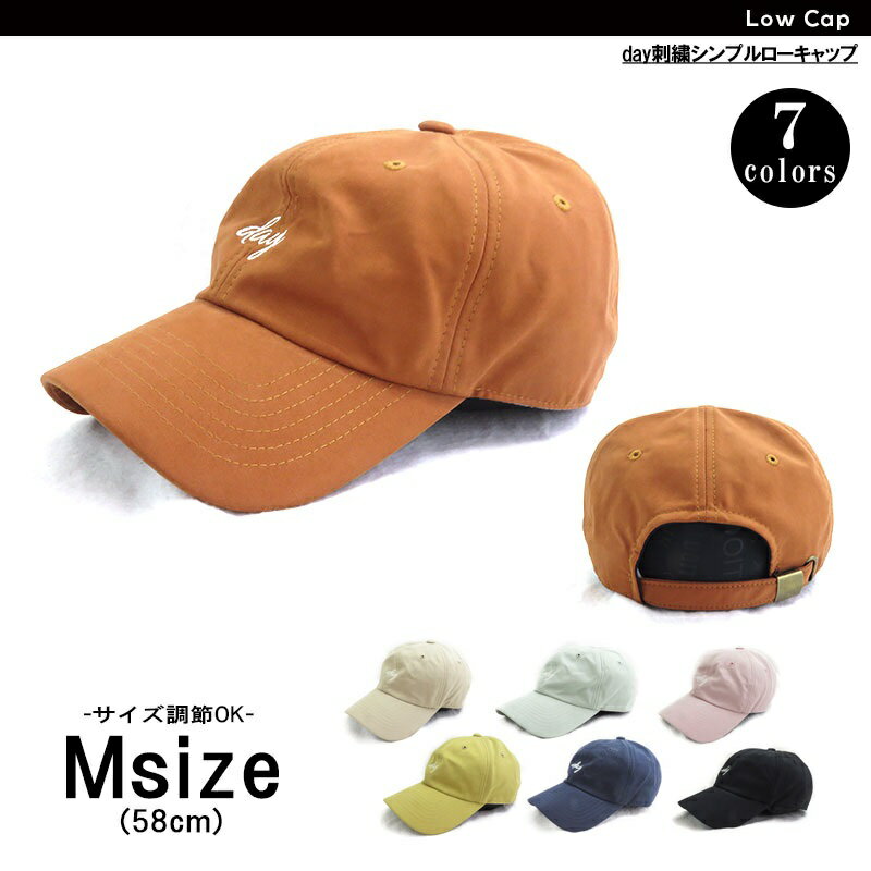 【送料無料】day刺繍シンプルローキャップ [VA3-097] サイズ調整可能 アウトドア 登山 ハイキング トレッキング キャンプ 散歩キャップ おしゃれ カワイイ 小顔効果 シンプル〔サニプレ]